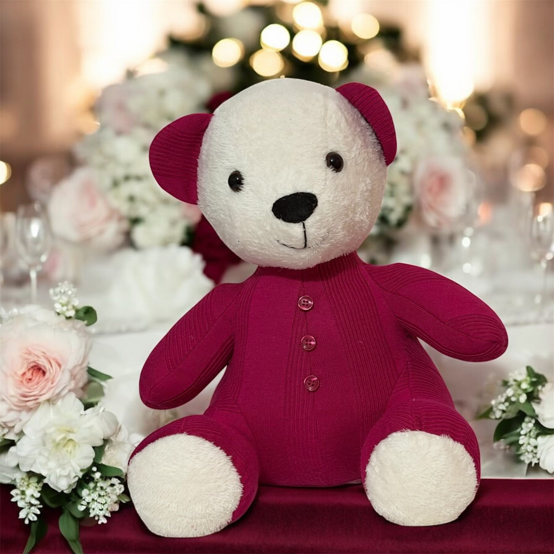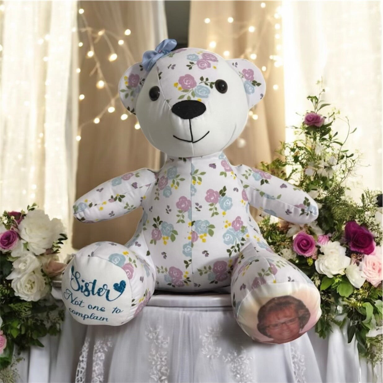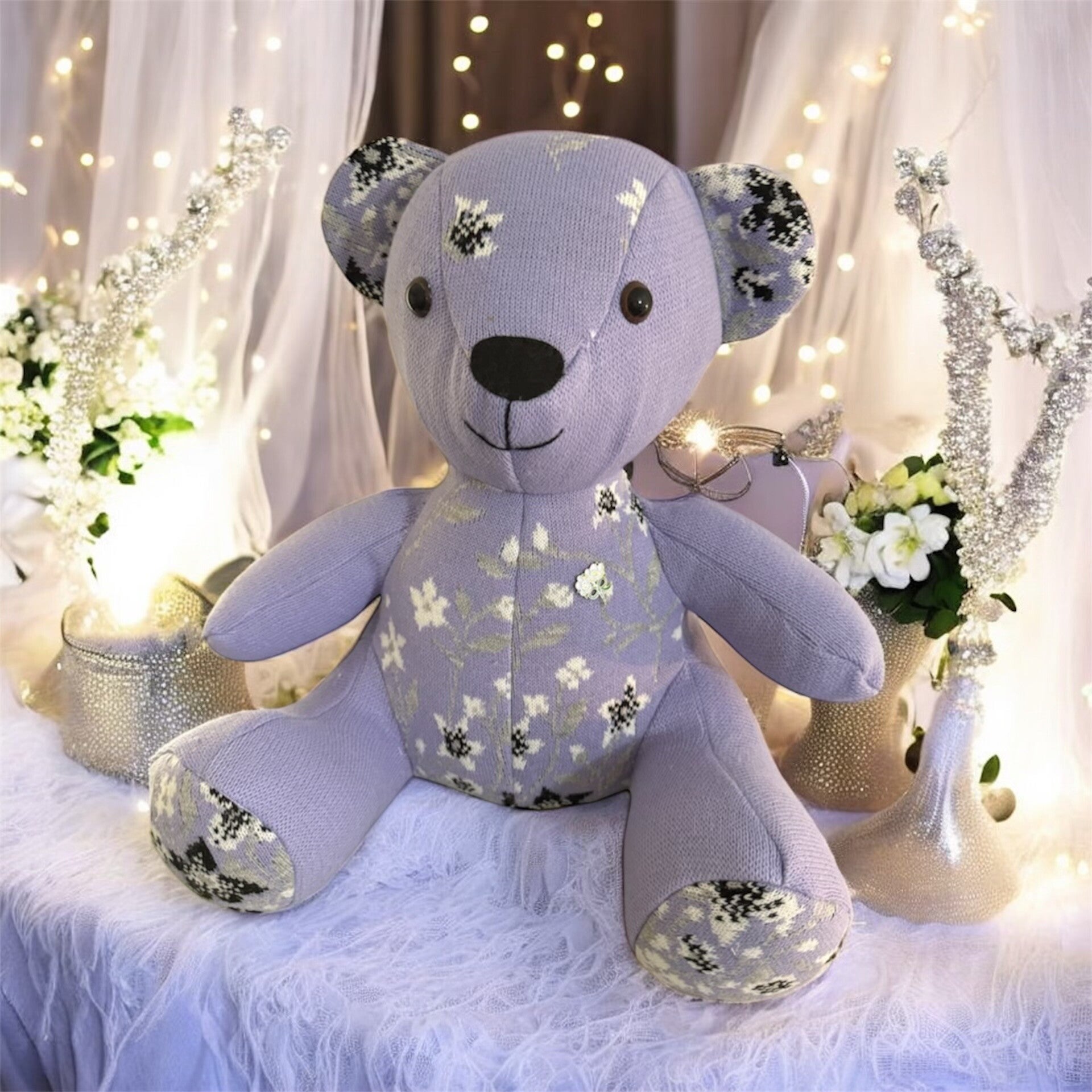 Each Memory Bear is lovingly handmade from your cherished clothing, transforming precious garments into a soft, comforting keepsake.Sitting at approximately 12 inches tall, they are the perfect size to hold, display, and treasure for years to come. Every bear is carefully created with attention to detail, ensuring that special fabrics, patterns and meaningful pieces are thoughtfully placed wherever possible.Whether made from a loved one’s clothing, baby grows, uniforms or favourite outfits, each stitch holds a story — turning memories into something you can hug.